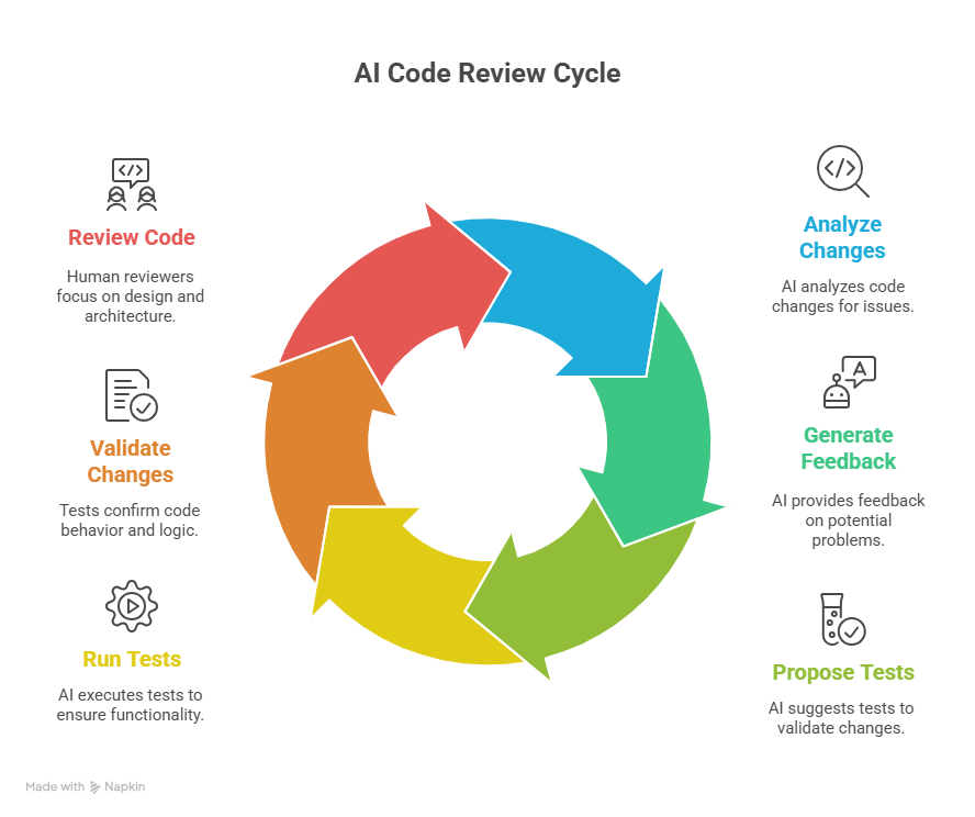 Initial versions of AI code review acted like copilots, flagging style slips, spotting risky code, or suggesting small rewrites. Helpful, yes, but always reactive and dependent on a human trigger. The evolution now underway is toward tools that act on their own, running proactively when coverage dips or when sensitive parts of the codebase change. Instead of waiting for developers to ask, these systems anticipate where attention is needed and surface proof through tests, not just opinions.