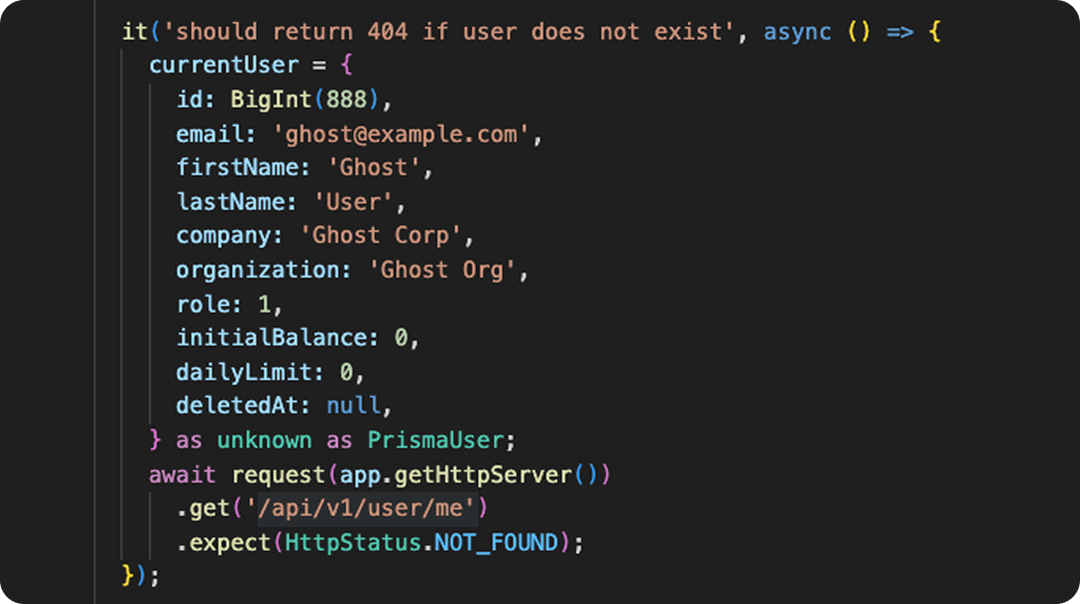 Example of a unit test that validates edge cases (404 response). Automated test generation tools like Early can instantly create or augment such tests within your CI pipeline.