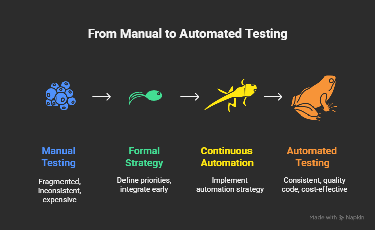 A proper automated testing strategy gives developers a clear map of what’s critical, automates the boring parts, and forces feedback early enough to prevent panic later. The payoff isn’t “more tests” but fewer surprises, fewer 2 AM rollbacks, and a team that ships with confidence instead of anxiety.